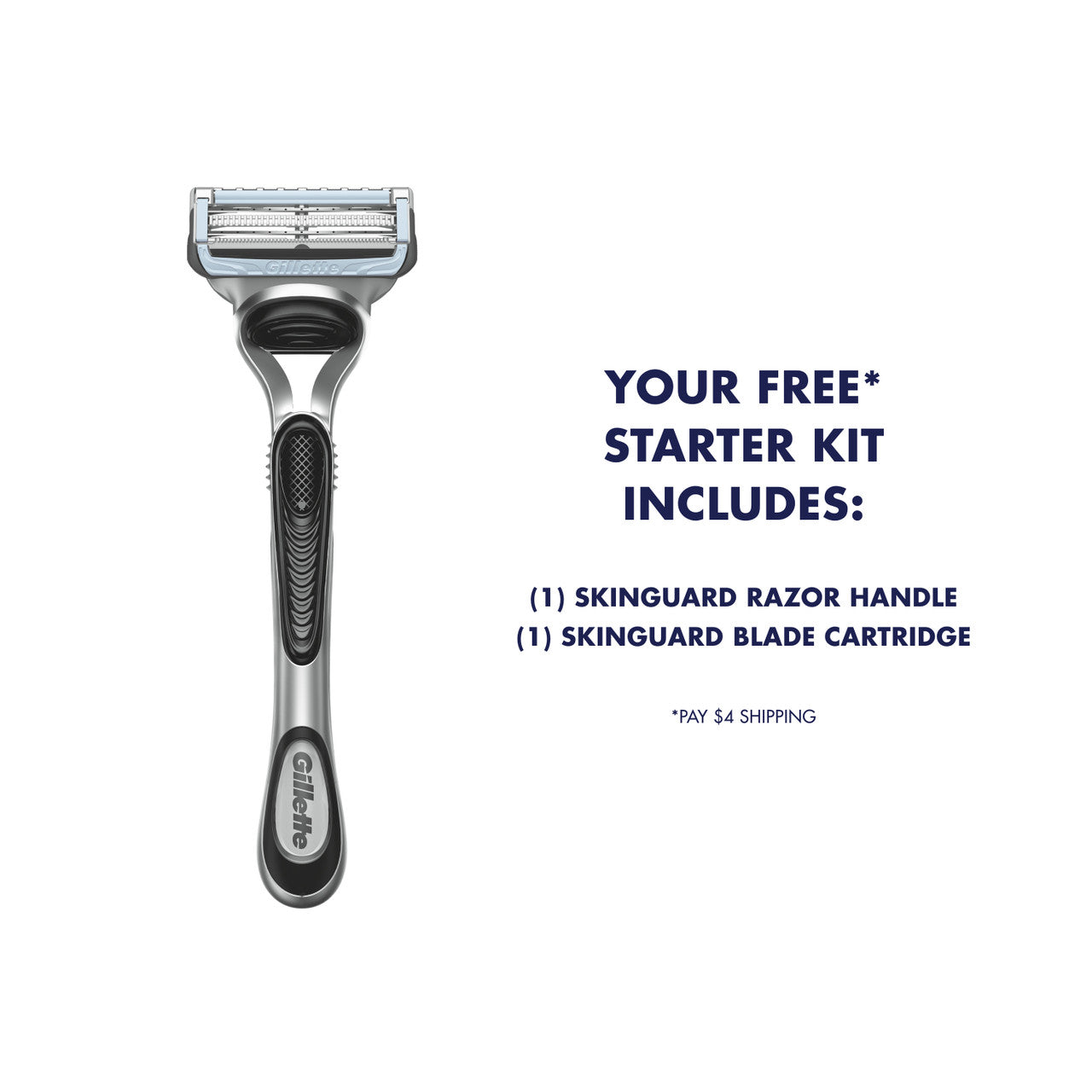 Choose your free kit, pay $4 for shipping, and get everything you need to start shaving with Gillette: a handle and one of our bestselling blades.
